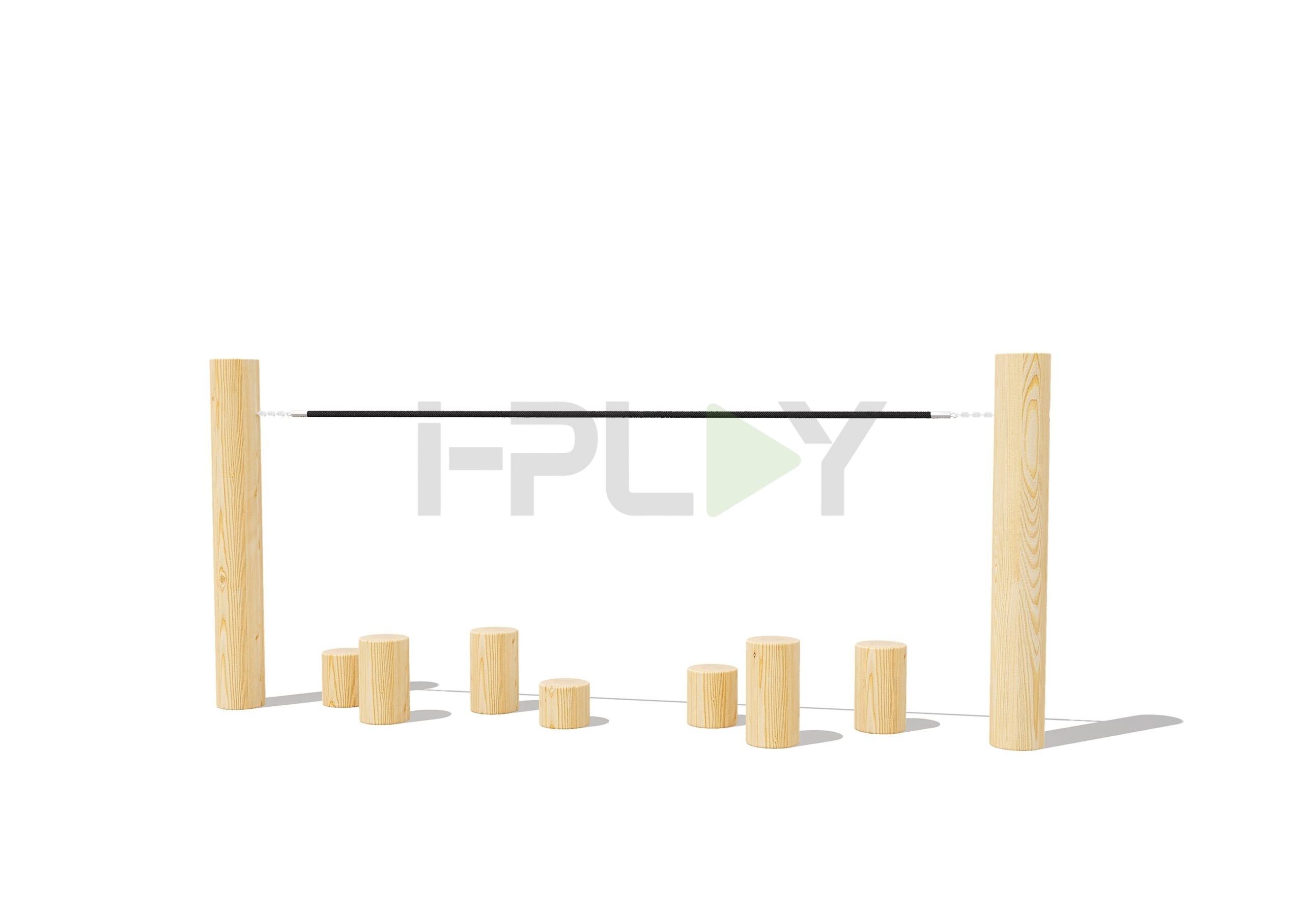 Дерево робиния (акация), двухслойная пропитка на водной основе. Полипропиленовый армированный канат 16 мм, нержавеющая сталь.