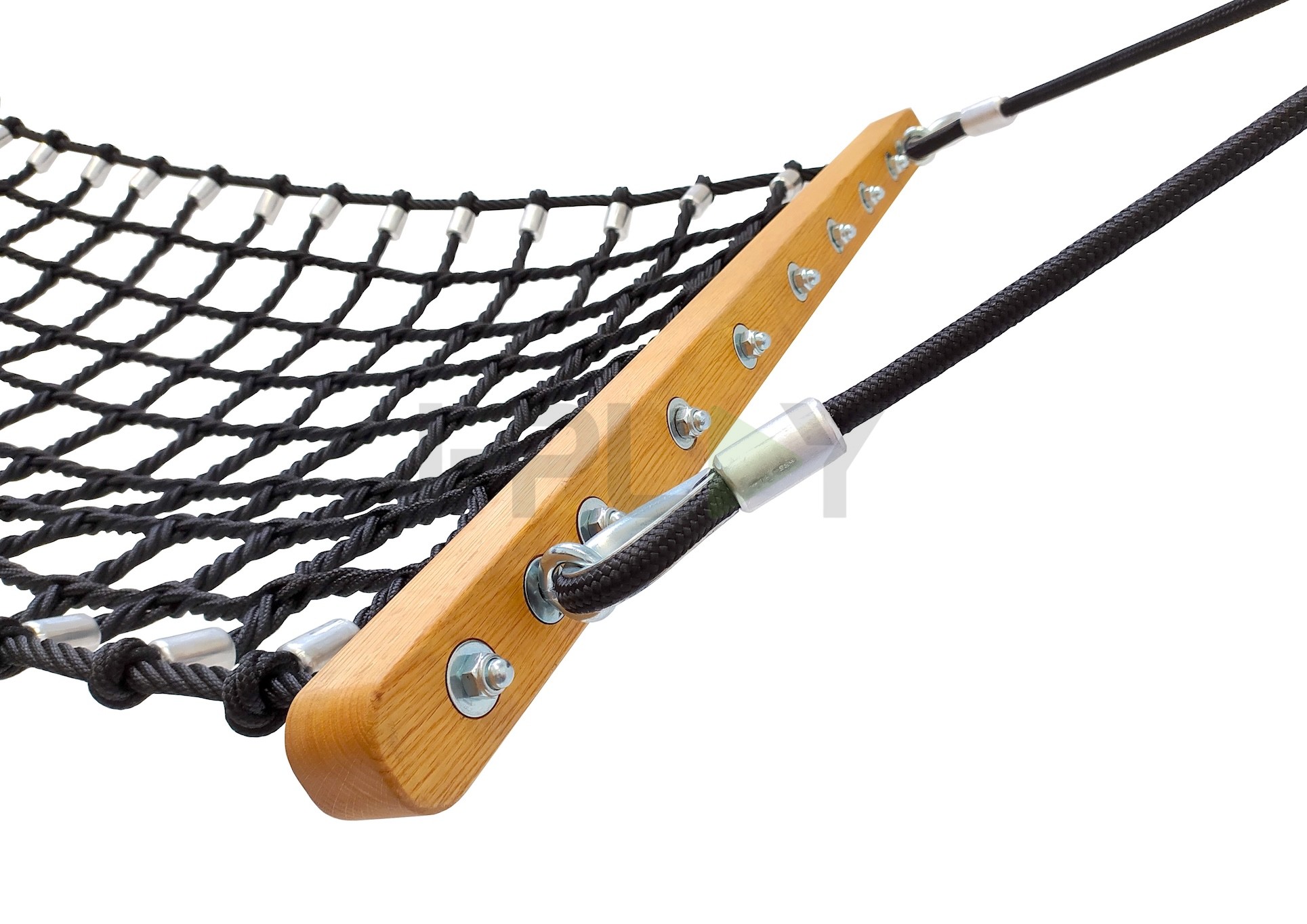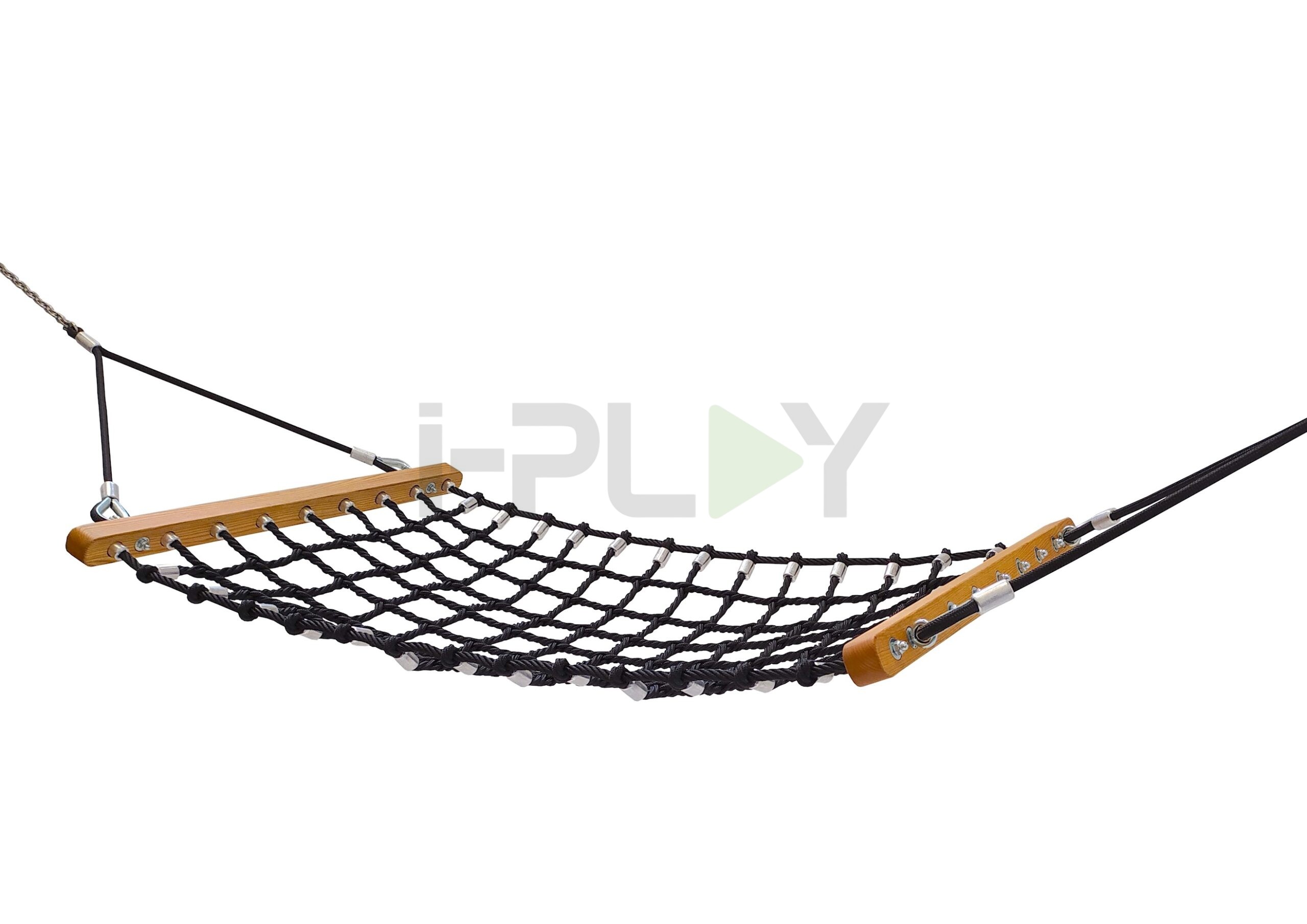 Гамак изготовлен из армированного каната, дерева (дуб), алюминия и нержавеющей стали.