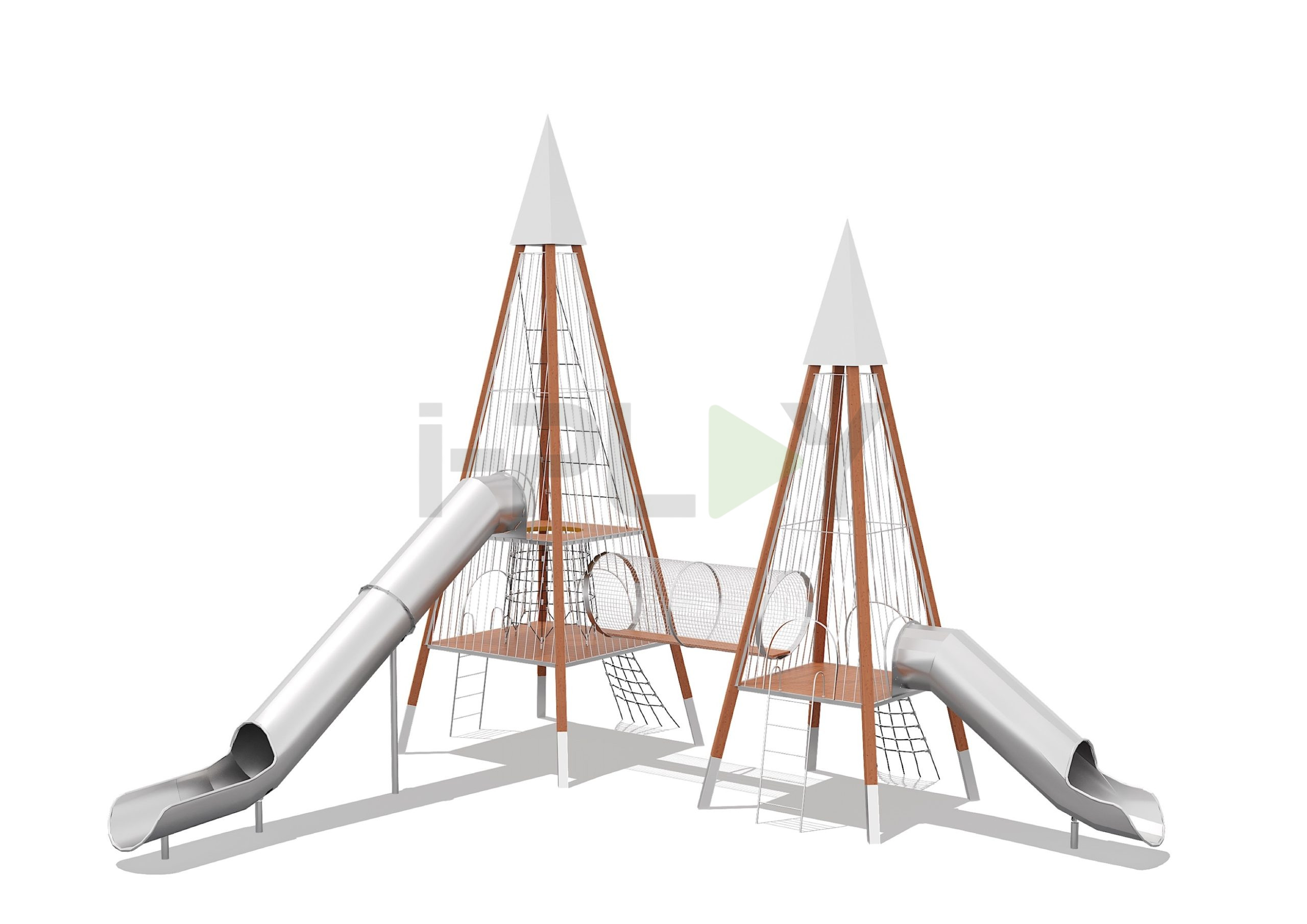 Дерево клееный брус сосна, двухслойная пропитка на водной основе. Горки нержавеющая сталь.