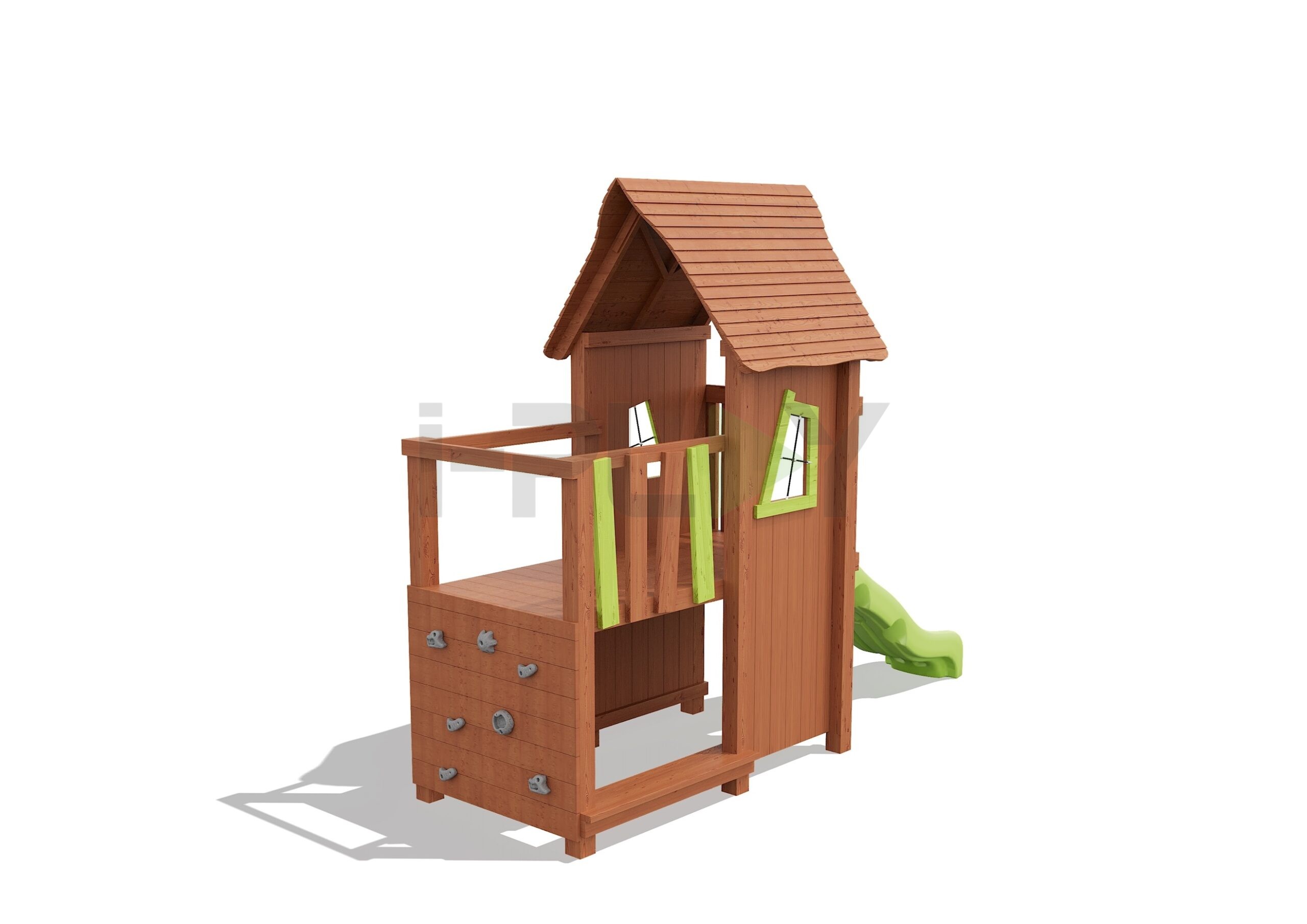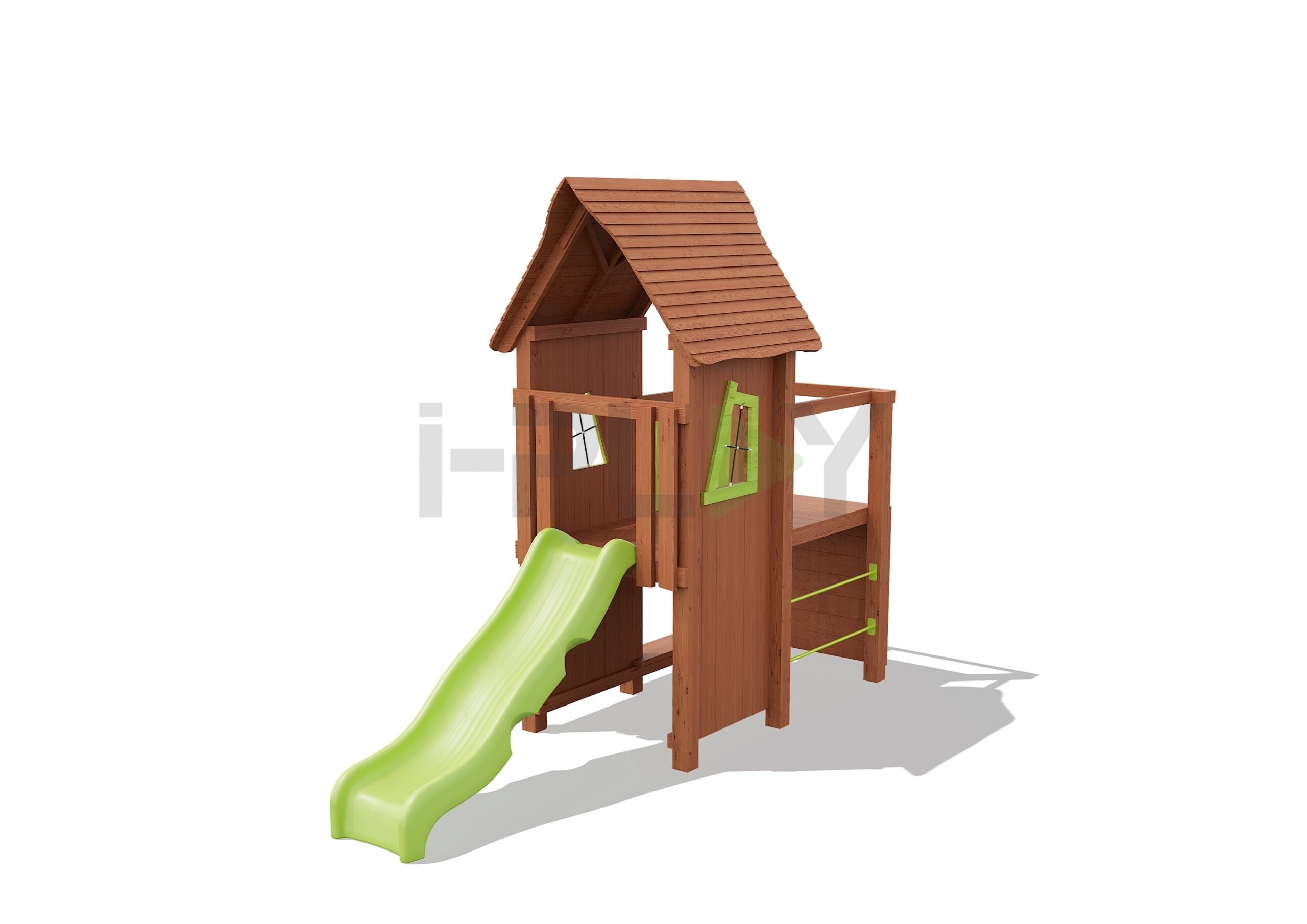 Дерево клееный брус сосна, двухслойная пропитка на водной основе. Горка пластик HDPE.