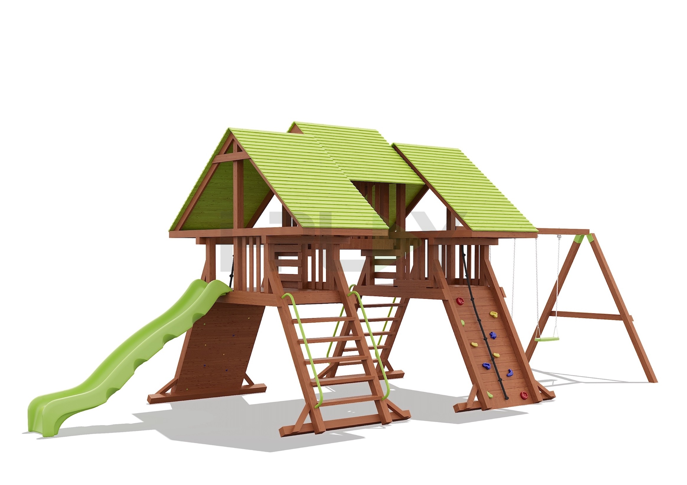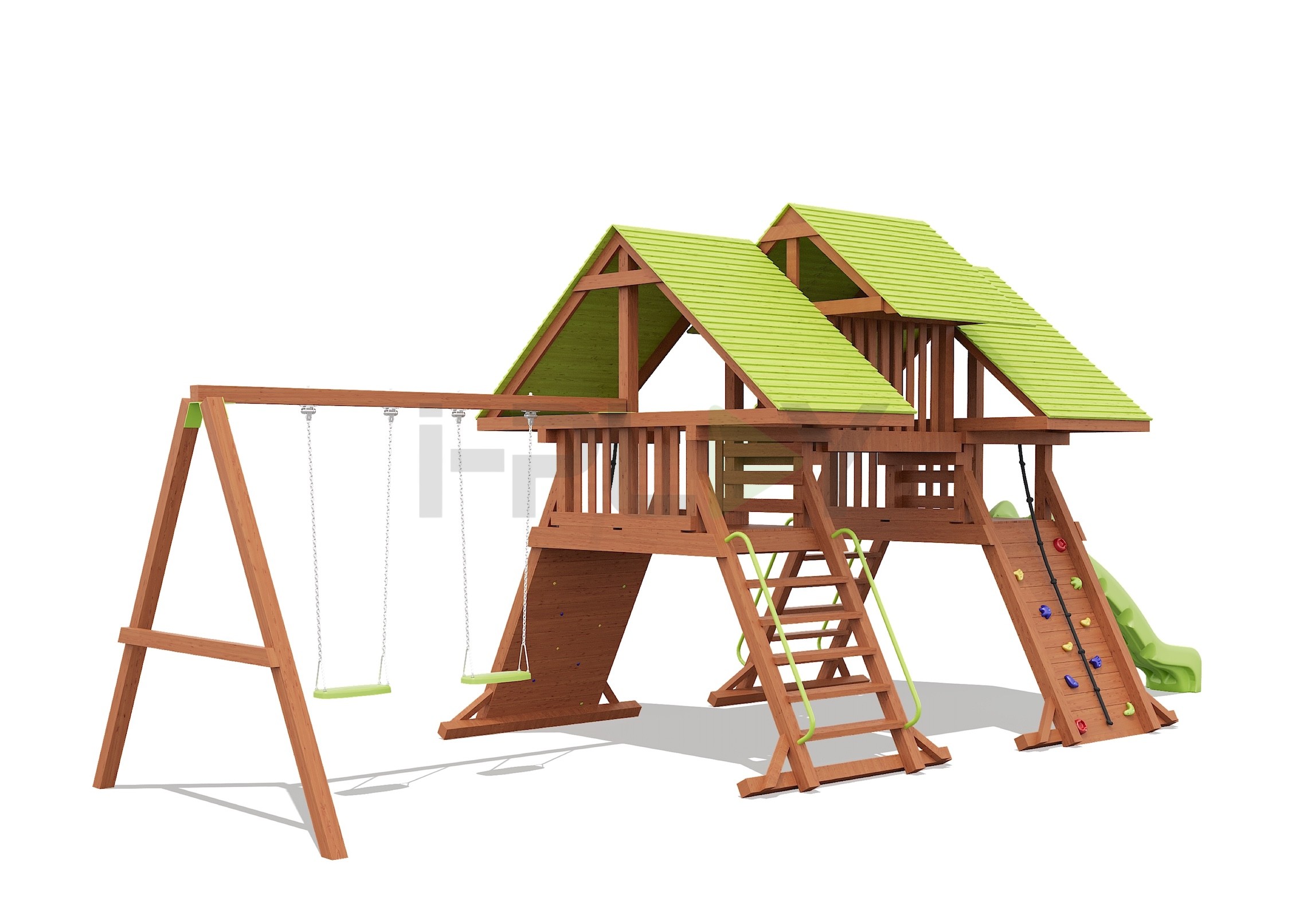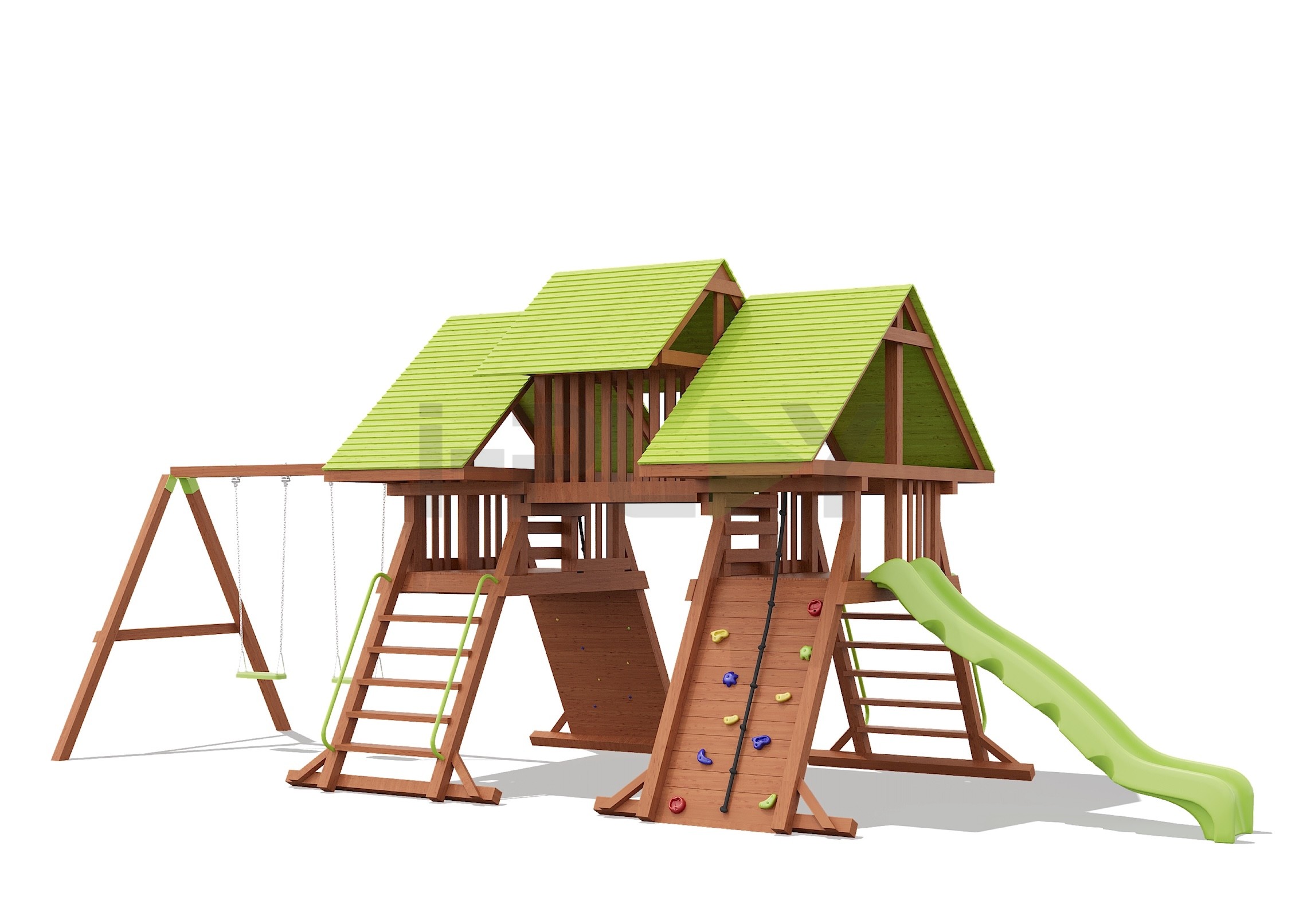 Дерево клееный брус сосна, двухслойная пропитка на водной основе. Горка пластик HDPE. Цепь нержавеющая/оцинкованная сталь.