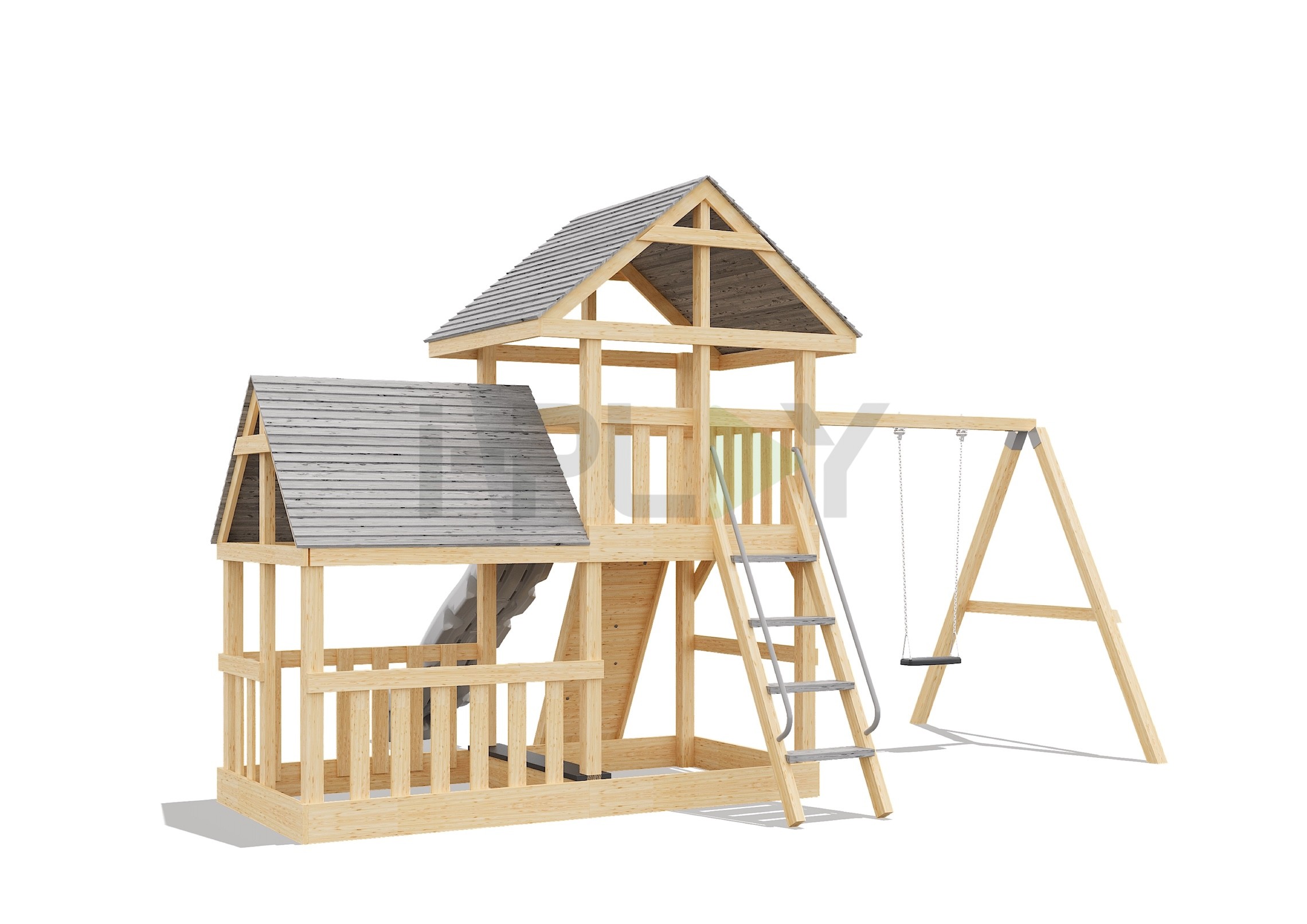 Дерево клееный брус сосна, двухслойная пропитка на водной основе. Горка пластик HDPE. Цепь нержавеющая/оцинкованная сталь.