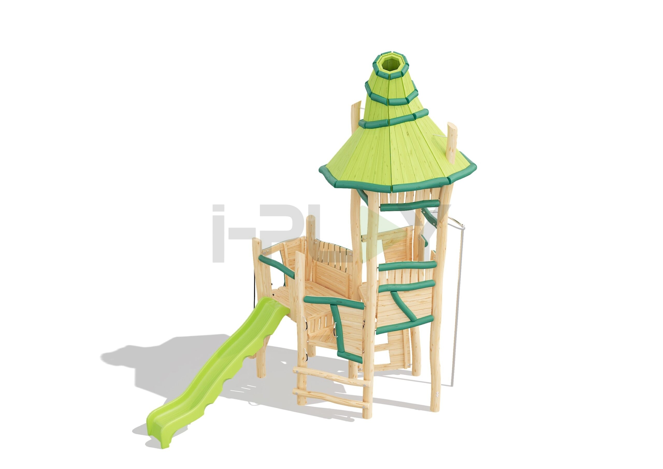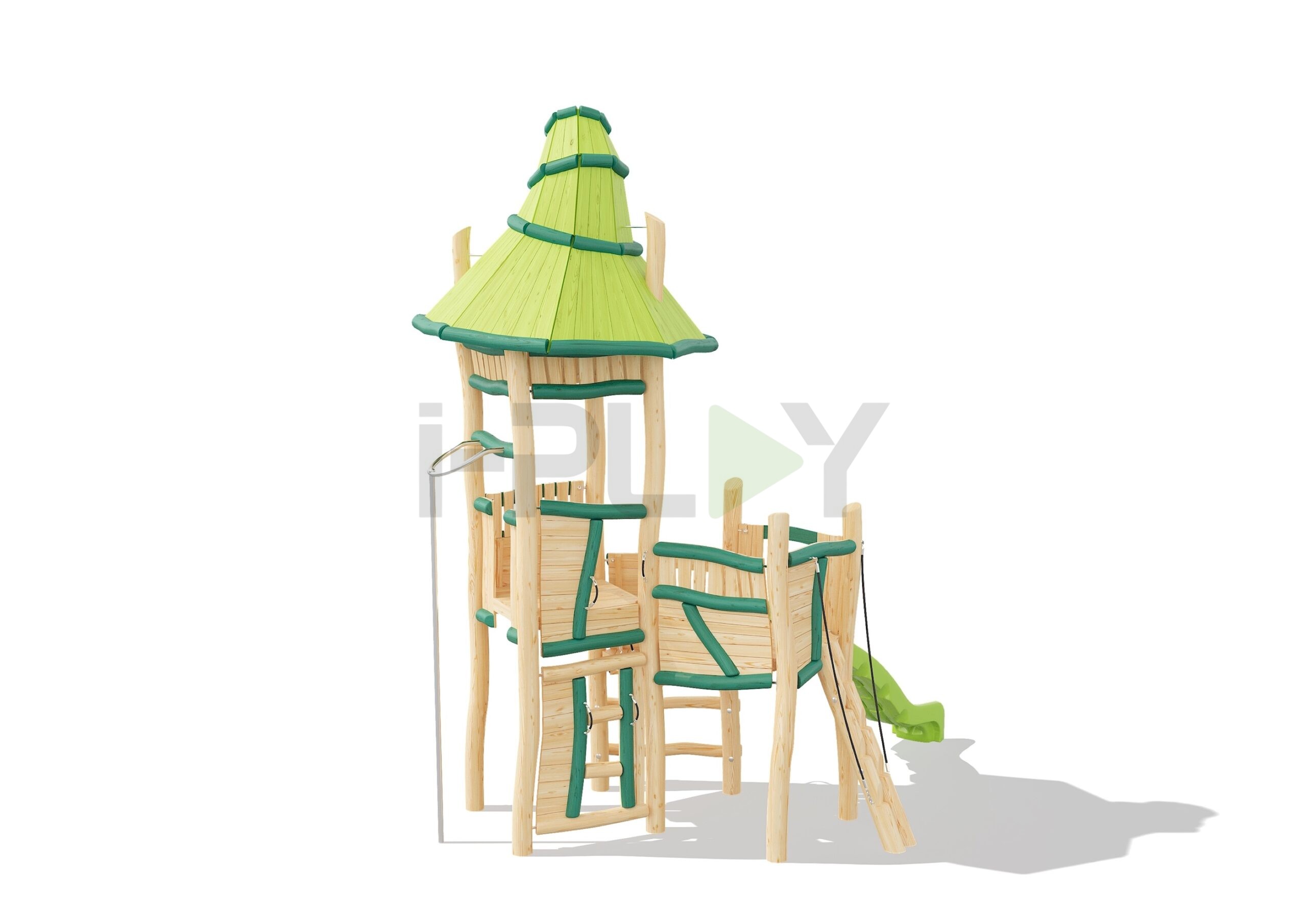 Дерево робиния (акация), лиственница, двухслойная пропитка на водной основе. Полипропиленовый армированный канат 16 мм, горка HDPE, пожарный столб нержавейка.