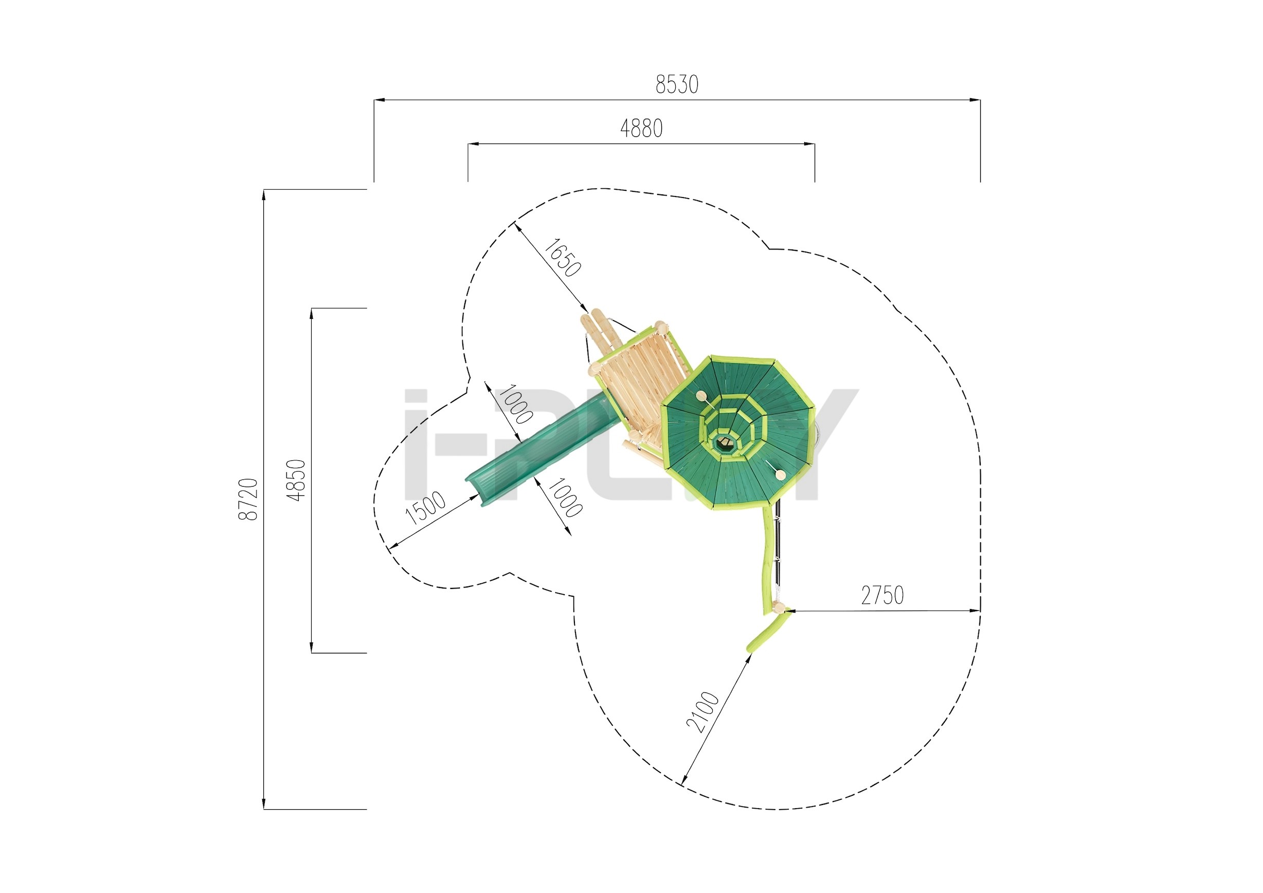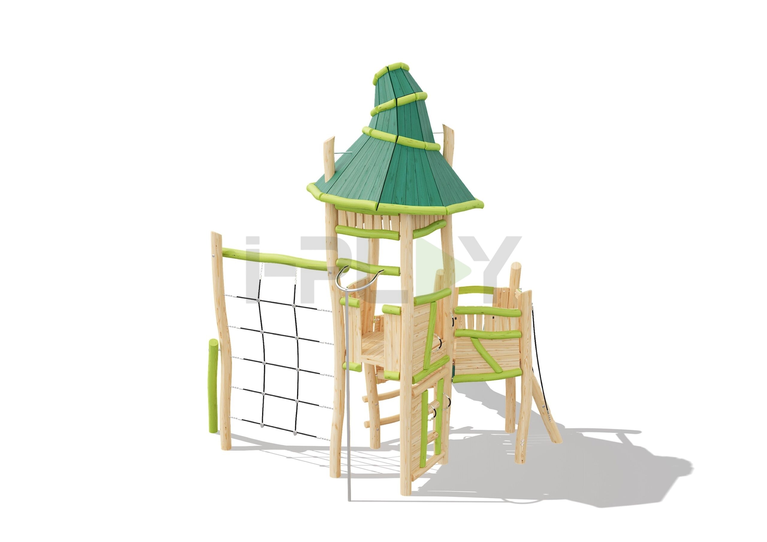 Дерево робиния (акация), лиственница, двухслойная пропитка на водной основе. Полипропиленовый армированный канат 16 мм, горка HDPE, пожарный столб нержавейка.