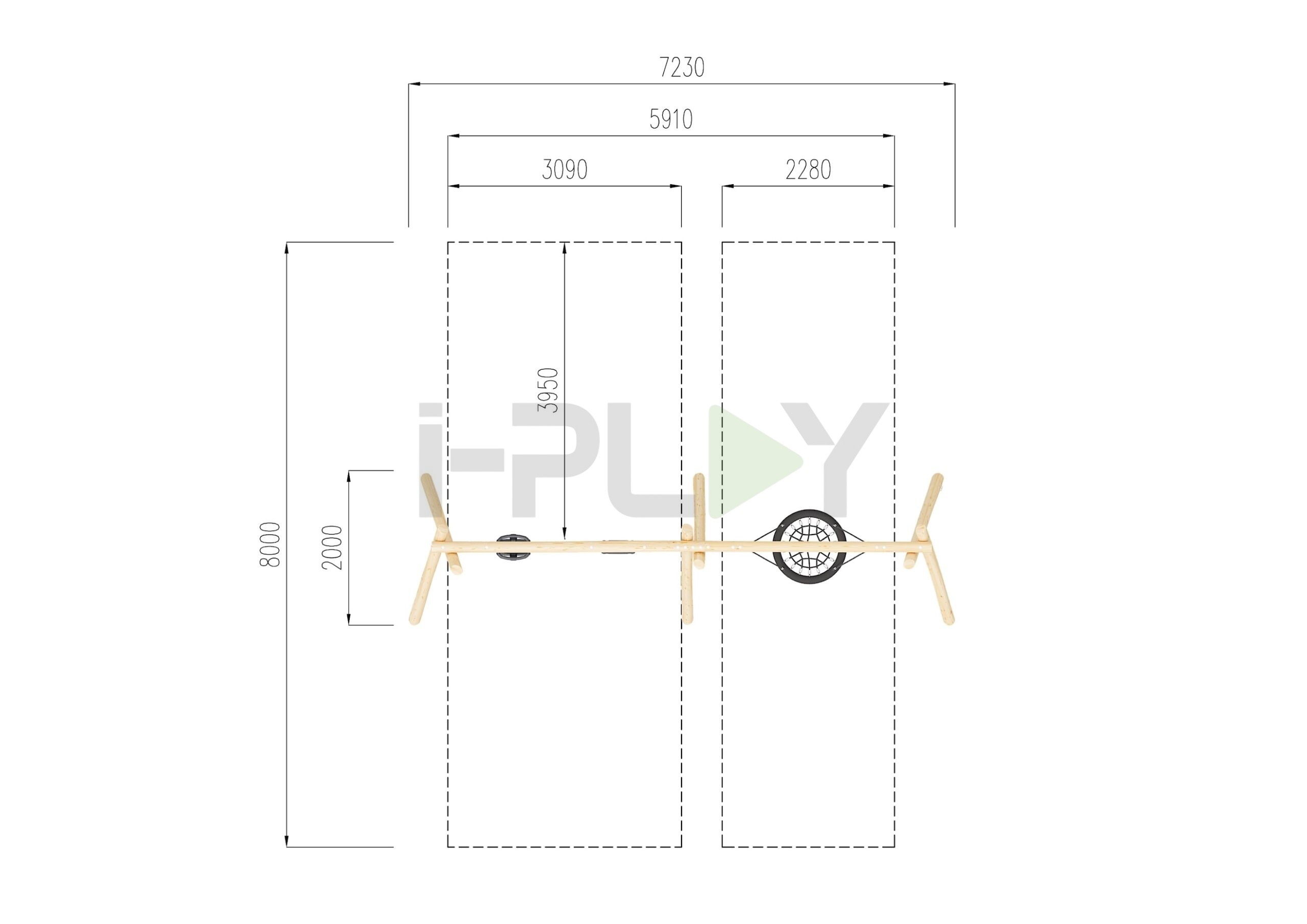 Дерево робиния (акация), двухслойная пропитка на водной основе. Цепь нержавеющая сталь, армированный канат.