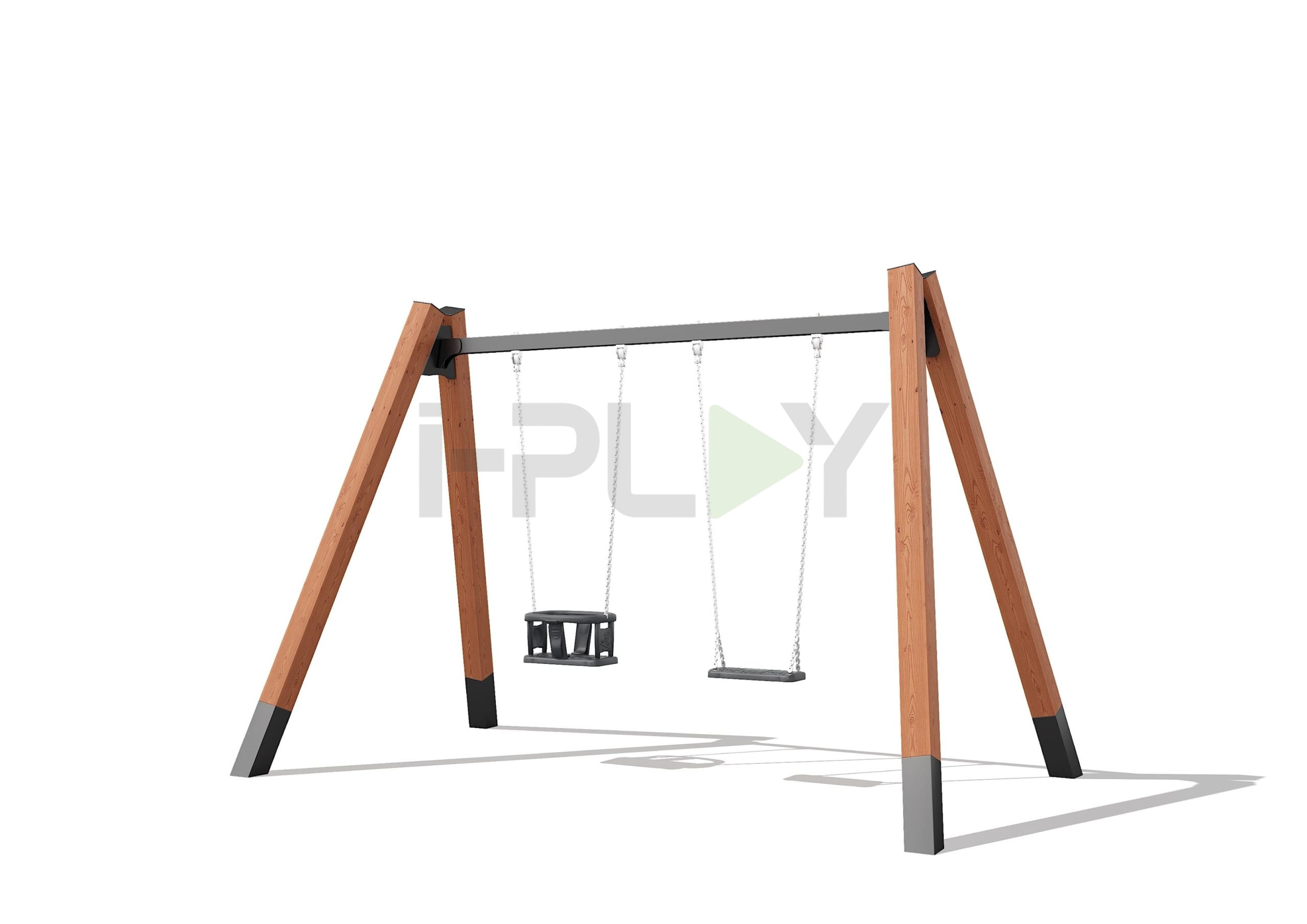 Дерево клееный брус сосна, двухслойная пропитка на водной основе. Цепь оцинкованная/нержавеющая сталь.