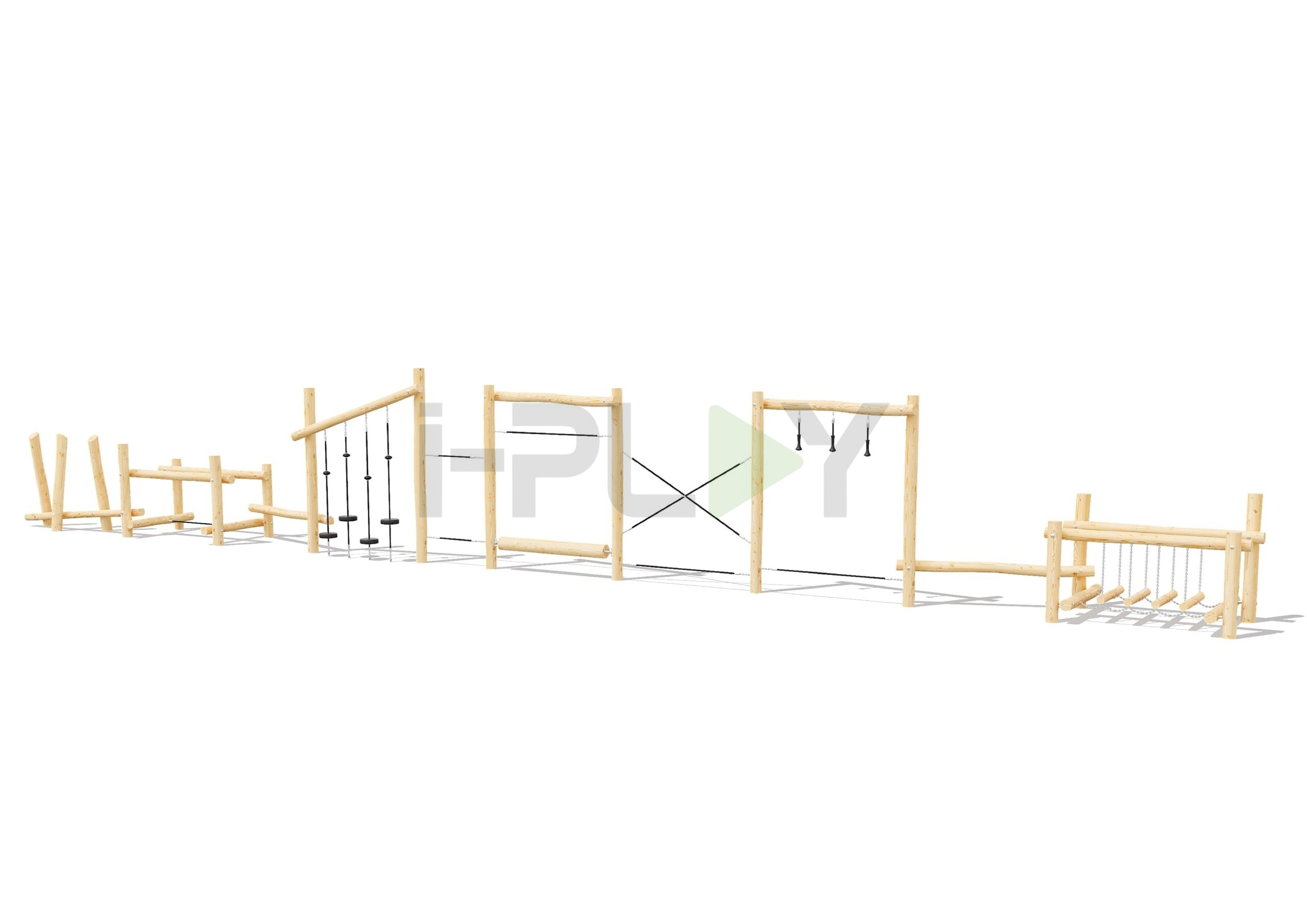 Дерево робиния (акация), двухслойная пропитка на водной основе. Полипропиленовый армированный канат 16 мм. Металлические элементы покрыты порошковой краской.
