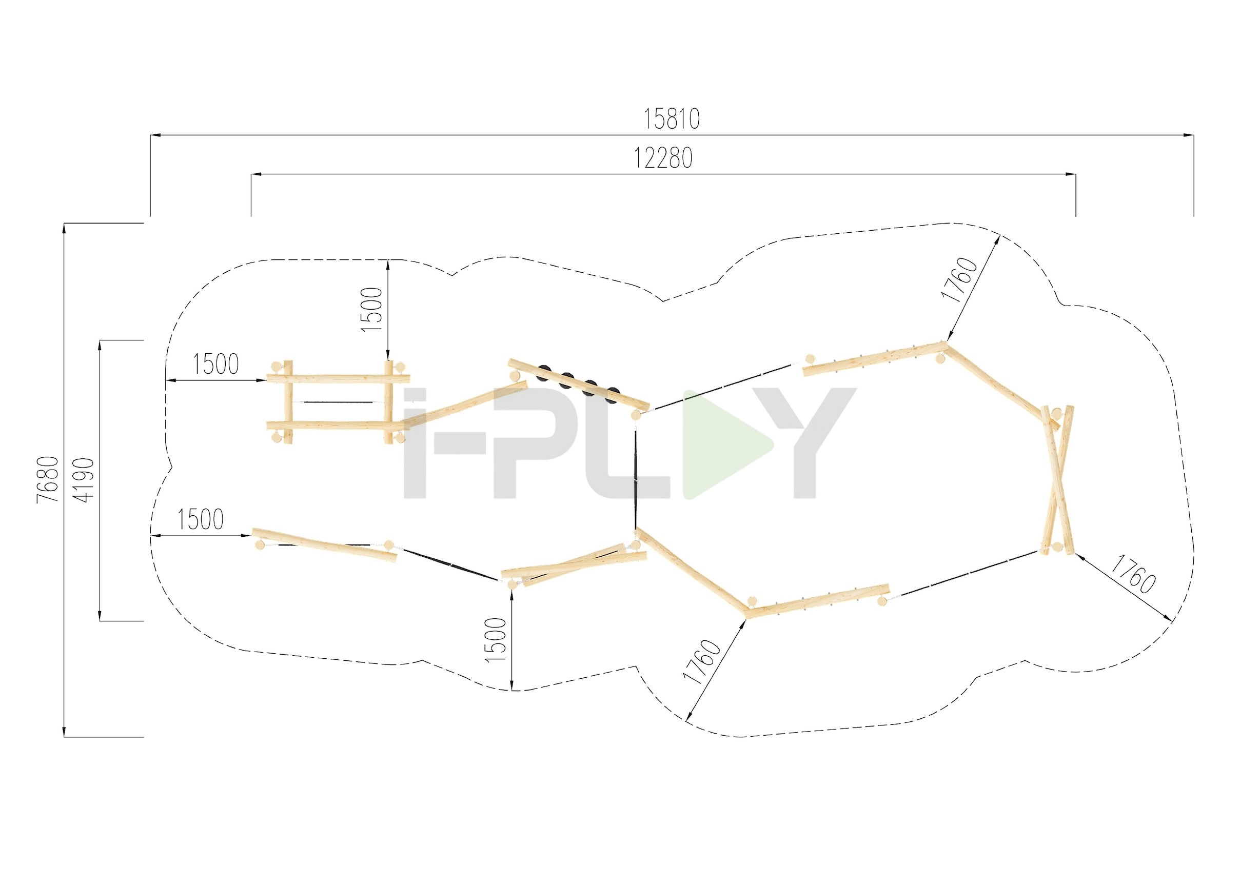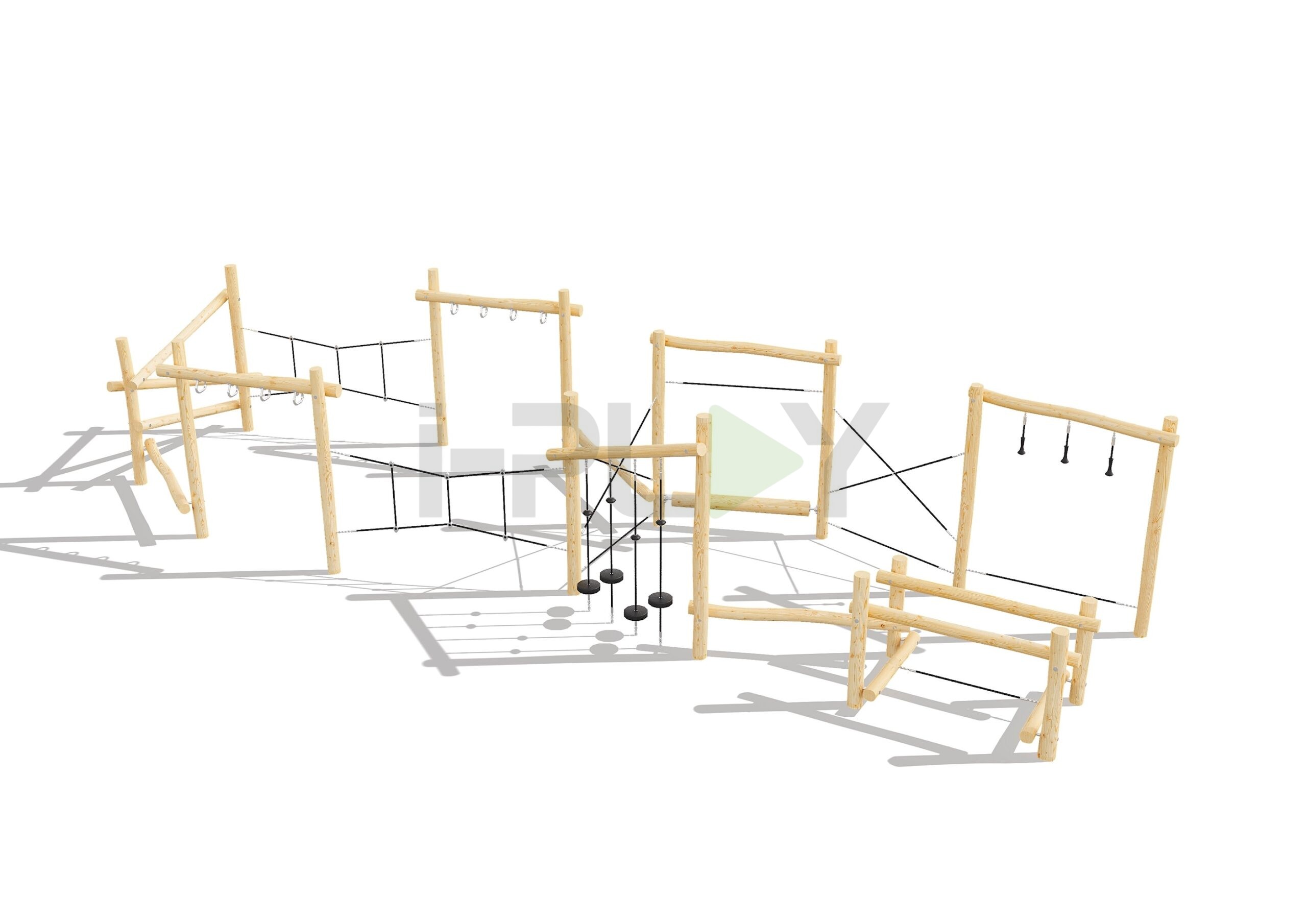 Дерево робиния (акация), двухслойная пропитка на водной основе. Полипропиленовый армированный канат 16 мм. Металлические элементы покрыты порошковой краской.