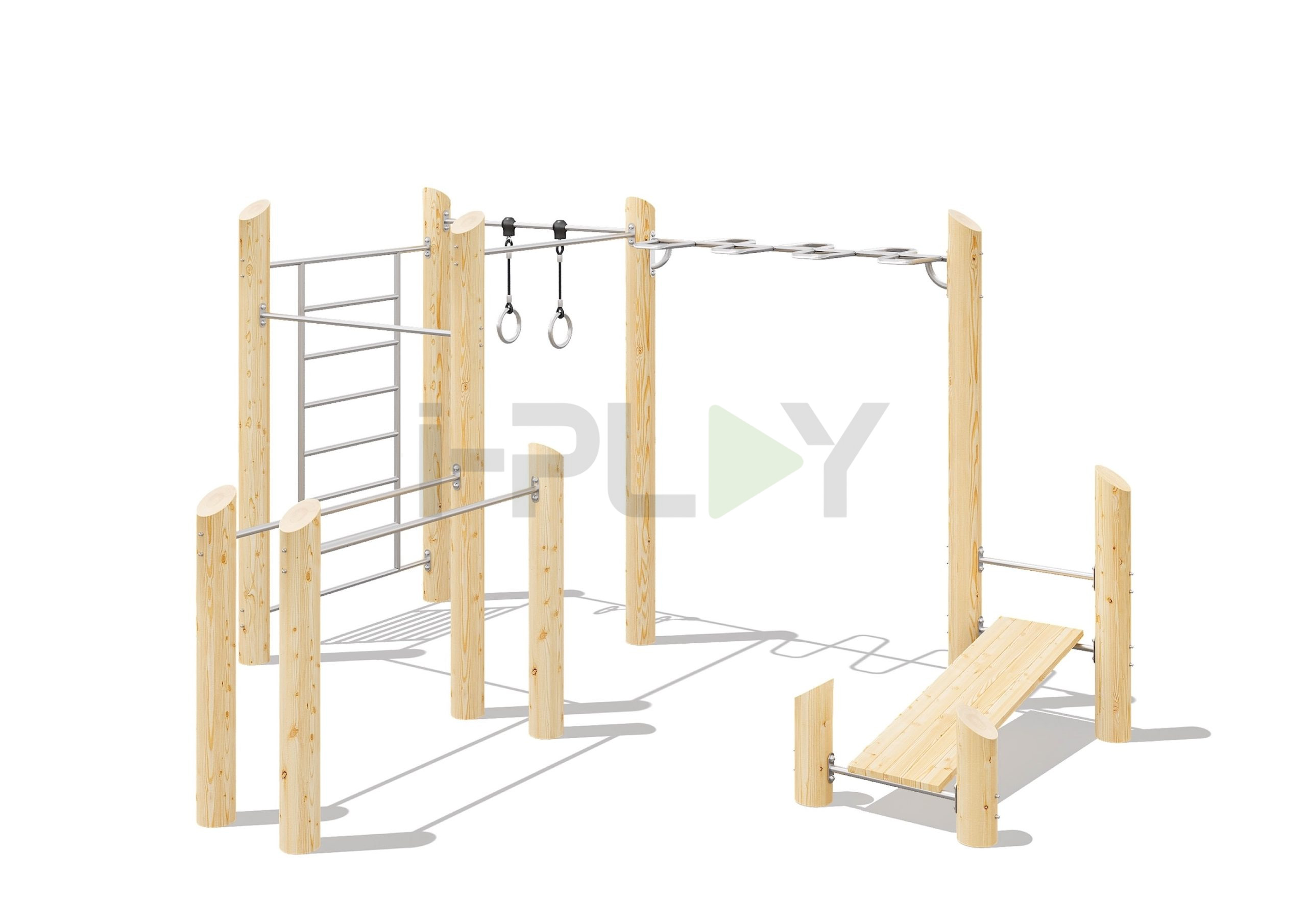2 перекладины, перекладина с кольцами, шведская стенка, рукоход, брусья, скамья для пресса
